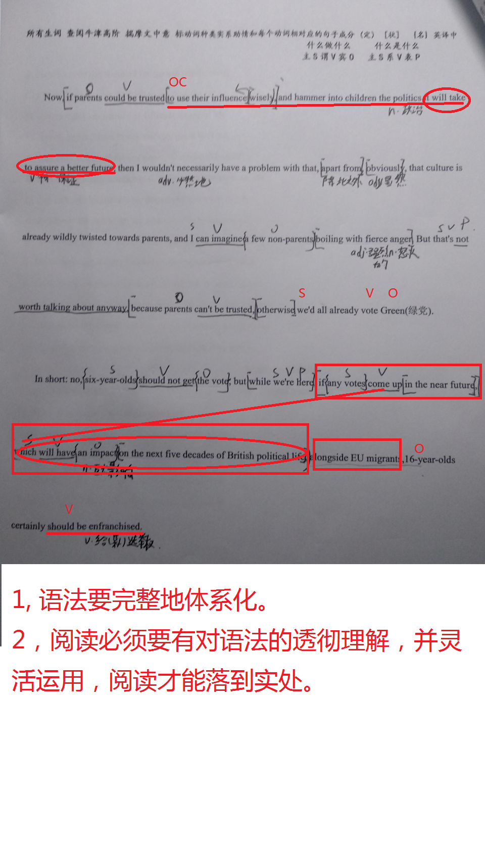 学校学案或者布置的作业中的,完形填空,阅读理解,任务型阅读,语法填空,凡是文章不能透彻理解的,都要认真地查生词,划句子成分,翻译,三管齐下,彻底理解文章。